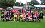 Zum Jubiläum und der Einweihung konnten die Verantwortlichen die Traditionsmannschaft des 1. FC Köln gewinnen. Die ehemals Aktiven waren von der tollen Anlage angetan. Oft hörte man: „Wir haben zu unserer Zeit auf schlechteren Plätzen spielen müssen“. Solch ein Lob freut natürlich die Verantwortlichen des Vereins. Gegner der Kölner Mannschaft war die Raiffeisenauswahl, die zumeist aus Spielern der umliegenden Vereine und des Gastgebers stammen. Die Raiffeisenelf forderte die Ex-Profis sichtlich und führte zwischenzeitlich mit 1:0 und 2:1. Das Endergebnis fiel mit einem 4:5 für die Kölner sehr knapp aus. Auf diese Leistung kann die Auswahlmannschaft sehr stolz sein. In der Halbzeitpause unterhielt das große Tanzkorps der „Fidelen Jongen“ aus Pracht die Zuschauer und erhielt den verdienten Applaus. Besonders dankten die Verantwortlichen allen Spielern und dem Tanzkorps, die bei den herrschenden Temperaturen und der Schwüle tollen Sport und einen tollen Tanz gezeigt haben. (kkö)