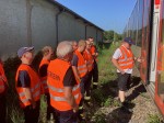 In zwei Gruppen wurden der Wehr verschiedene Sicherheitseinrichtungen und die Notabschaltung der Bahn vorgeführt, um im Ernstfall die richtigen Maßnahmen einleiten zu können. Im weiteren Verlauf der Übung wurden durch Schäfer und Becker die "Einsatzmerkblätter für Eisenbahnfahrzeuge" vorgestellt und die richtige Anwendung besprochen. In den Einsatzmerkblättern werden unter anderem die Notausstiege auf einer Skizze gezeigt, Rettungs- und Versorgungsöffnungen nach Priorität aufgelistet und Gefahren durch elektrischen Strom, Flüssigkeiten und Gase aufgeführt. Der Wehr liegen diese Merkblätter in schriftlicher sowie digitaler Form vor, damit diese im Einsatzfall schnell und zielgerichtet eingesetzt werden können.
