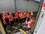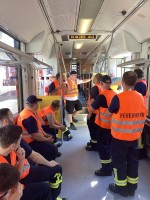In zwei Gruppen wurden der Wehr verschiedene Sicherheitseinrichtungen und die Notabschaltung der Bahn vorgeführt, um im Ernstfall die richtigen Maßnahmen einleiten zu können. Im weiteren Verlauf der Übung wurden durch Schäfer und Becker die "Einsatzmerkblätter für Eisenbahnfahrzeuge" vorgestellt und die richtige Anwendung besprochen. In den Einsatzmerkblättern werden unter anderem die Notausstiege auf einer Skizze gezeigt, Rettungs- und Versorgungsöffnungen nach Priorität aufgelistet und Gefahren durch elektrischen Strom, Flüssigkeiten und Gase aufgeführt. Der Wehr liegen diese Merkblätter in schriftlicher sowie digitaler Form vor, damit diese im Einsatzfall schnell und zielgerichtet eingesetzt werden können.