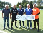 Der Schalke Fan-Club "Rhein-Wied Blau Weiß" kam nicht mit leeren Händen, denn Olaf Thon und Klaus Fischer wurde vor dem Anpfiff des Spiels ein Scheck über 1404 Euro überreicht, der dem Sozialprojekt "Schalke hilft" zugutekommen soll. Einen weiteren Scheck in Höhe von 1004 Euro durften die Spieler mit nach Gelsenkirchen nehmen. Das Geld soll ebenfalls in das Hilfsprojekt "Schalke hilft" einfließen, es wurde vom Verein SV Ellingen gestiftet.