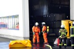 Die Einsatzleitung teilte die Einsatzstelle in drei sogenannte Abschnitte ein. Dies waren Evakuierung und Absperrung, der Schadensbereich sowie der Abschnitt Gesundheit, der von den Kräften des DRK-Ortsvereins gebildet wurde. Die Erkundung des Schadensortes wurde durch Feuerwehrleute in Chemikalienschutzanzügen vorgenommen. Bei den derzeit wieder herrschenden Temperaturen eine buchstäblich schweißtreibende Angelegenheit. Es standen immer genügend Kräfte zur Ablösung bereit.