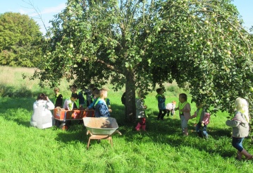 Die Kinder können sich nun schon auf den leckeren Apfelsaft ihrer selbst gepflückt Äpfel freuen. (PM)