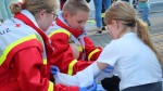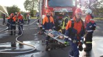 Weitefeld. Um 18 Uhr wurde in einer Produktionshalle der Firma Stühn in Weitefeld ein Industriebrand mit vermissten Personen angenommen. Mit lautem Horn fuhren die rund 70 Kinder unter interessierten Blicken der Zuschauer zur jährlichen Abschlussübung vor. Erstmals nahm auch das Jugendrotkreuz (JRK) Daaden an der Übung teil, die sich erfreut zeigten nun das Gelernte in die Praxis umzusetzen. Mit Schlauch und Trage retteten die Jugendlichen der Feuerwehr insgesamt vier Personen aus der Halle und übergaben diese an der Verletztensammelstelle des JRK. Währenddessen entnahmen die heranwachsenden Retter aus mehreren Hydranten Wasser und löschten die Halle über den Einsatz etlicher Strahlrohre.