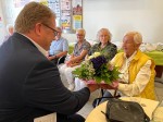 Kreis Altenkirchen/Herdorf. Dort sind derzeit zahlreiche Bilder und Collagen von Hannelore (Hanne) Volk zu sehen: nicht nur Landschaften und Stillleben, sondern auch Fördertürme und Halden. Die hochbetagte Künstlerin aus Betzdorf, 94 Jahre zählend, hat noch die Zeiten miterlebt, als sich Seilscheiben drehten und in den Hütten das Erz verarbeitet wurde. Viele verschiedene Eindrücke hat Hanne Volk gesammelt und in ebenso vielen Stilen festgehalten. Zur Vernissage der Ausstellung begrüßte Museumsleiter Achim Heinz jetzt zahlreiche Besucher in Sassenroth. Hanne Volk war in Begleitung ihrer Söhne Hans-Jürgen und Martin gekommen.