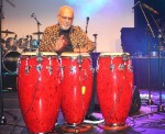 Es folgte Angela Fronteras, deren Temperament leicht zu erklären ist, da sie eigentlich Brasilianerin ist, aber über italienische, indianische und afrikanische Wurzeln verfügt. Das Spiel ihrer Drums und Percussion ist stark von schwarzafrikanischen und karibischen Rhythmen, sowie verschiedenen brasilianischen Musikstilen geprägt. Der Rhythmus geht automatisch in die Beine, möchte am liebsten lostanzen. Angela animierte das Publikum zum Mitsingen, wobei viele etwas Portugiesisch lernen mussten.