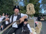 Klassisch führte der ortsansässige Musikverein „Concordia“ den Festzug an, dem ebenso traditionell der Erntewagen folgte. Die Erntekrone, wieder vom Kirchenchor „Cäcilia“ Friesenhagen gebunden, prangte in ihrer vollen Schönheit mitsamt eines gewaltigen Heuballens an einer übergroßen Heugabel am Erntewagen mit dem Schriftzug „Wir danken für die gute Ernte“. Der wurde in diesem Jahr jetzt zum vierten Mal von der „Wildenburger Landjugend“ gestaltetet, die übrigens ihr 25-jähriges Bestehen feiert und mit generationsübergreifender Fußgruppe den prunkvollen Wagen geleitete.