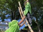 So hatte die Gruppe „Kuchenwald“ lieber leckere selbst gekochte Erdbeer- und Heidelbeere Marmelade mitgebracht. Brot um Brot wurde geschmiert und an die Zuschauer verteilt. Die Gruppe „#Brauchtum“, die im letzten Jahr erstmals gemeinschaftlich startete, zog ihren Wunschbaum durch die Straßen. Allein rund 20 Kinder umfasste die große Fußgruppe. „Die Landeier“ waren mit ihren Wetterfröschen samt sämtlicher Wetterlagen am Start. „Wir greifen nach den Wolken“, sagt die Gruppe, die das Ding mit dem Wetter mal selbst in die Hand nimmt.
