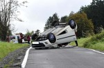 Der Pkw war nach dem Überschlag auf dem Dach liegend in der Mitte der Straße zum Stillstand gekommen. Kräfte der Freiwilligen Feuerwehren unterstützten bei der Absicherung und Sperrung der schmalen, aber viel befahrenen Straße. Weitere Kräfte stellten den Brandschutz sicher. Der Rettungsdienst versorgte die schwer verletzte Fahrerin, die dann in ein umliegendes Krankenhaus gebracht wurde. Für die Unfallaufnahme und die Rettungsmaßnahmen musste die Straße kurzzeitig voll gesperrt werden. Ein Abschleppdienst musste den nicht mehr fahrbereiten Pkw bergen und abtransportieren.