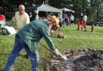 Glatteneichen. Mit von der zwanglosen Partie waren wieder fast alle Glatteneichener, verstärkt um Leute, die hier früher einmal gewohnt haben und gerne für einige Stunden zurückgekehrt waren. Am Nachmittag war das mächtige Lagerfeuer in Gang. Das ausgenommene Federvieh wurde sorgfältig in Alufolie gewickelt und mit langen Schaufeln der Glut übergeben. Eine knappe Stunde später konnte angerichtet werden und alle erhielten ihren Anteil an der Leckerei: "Es schmeckt wunderbar!" Das Fest war wie immer ein schönes Beispiel für Gemeinsinn und Freude am Beisammensein aller Altersstufen in froher Runde. Man vergaß auch nicht, dem Eigentümer des Wiesengrundstücks für das Bereitstellen des "Festgeländes" am Ortsrand von Glatteneichen zu danken. (PM)