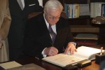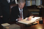 Im Anschluss fand eine Führung durch die Ausstellung mit dem Museumsleiter Scott H. Krause statt. An der Führung nahm auch die Witwe Willy Brands, Brigitte Seebacher teil, auf deren Initiative das Willy-Brandt-Forum Unkel 2011 gegründet wurde. Den Höhepunkt des Besuchs bildete der Eintrag in das Goldene Buch der Stadt mit Stadtbürgermeister Gerhard Hausen und Verbandsbürgermeister Karsten Fehr im originalgetreu rekonstruierten privaten Arbeitszimmer aus Brandts Haus in Unkel.