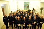 Im Anschluss erhielten die Feuerwehrleute die Urkunden und das jeweilige Ehrenzeichen. Drei Feuerwehrleute erhielten das Ehrenzeichen in Gold mit Lorbeerkranz für 45-jährige aktive Tätigkeit. Für 35-jährige Mitgliedschaft und aktiven Dienst erhielten zahlreiche Feuerwehrleute das Ehrenzeichen des Landes in Gold. Eine Ehrung erhielten auch die Einsatzkräfte, die neben der eigentlichen Feuerwehrtätigkeit, im Gefahrstoffzug des Landkreises aktiv sind. Diese erhielten für die 15-jährige Mitgliedschaft einen sogenannten Brusttaschenanhänger.