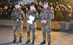 Im Lichtschein der flackernden Fackeln gestaltete sich das Gelöbnis zu etwas ganz Besonderem, optisch und akustisch und erzeugte bei vielen Besuchern ein Gänsehautgefühl. Nachdem mit der deutschen Nationalhymne das feierliche Gelöbnis beendet wurde, löste sich die militärische Ordnung auf, da viele Angehörige und Freunde auf den Hubertusplatz kamen, um zu gratulieren. Die enge Verbindung der Bevölkerung von Rennerod mit "ihrem" Sanitätsregiment war in jeder Phase der Veranstaltung zu spüren.