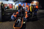 Die Aufgabenverteilung war damit klar: Die ersten Trupps gingen mit Wasser am Strahlrohr zur Menschenrettung vor. Nach dem Eintreffen der weiteren Kräfte wurde die weitere Wasserversorgung aufgebaut und die bereits eingesetzten Kräfte unterstützt. Andere Einsatzkräfte kümmerten sich derweil um den Aufbau und Betrieb der Beleuchtung an der Einsatzstelle. Die Rettung der verletzten Personen sowie die Brandbekämpfung wurde durch die Jugendfeuerwehr sehr routiniert und zielgerichtet vorgenommen.