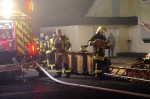 Der Innenangriff wurde wegen der Gefahr für die Einsatzkräfte zeitweise unterbrochen. Die Erkundung hatte ergeben, dass die Decke zum Dachstuhl eine sogenannte Lehmdecke war. Durch den hohen Löschwassereinsatz bestand die Gefahr des Einsturzes. Einsatzleiter David Musall erklärte: "Wir konnten keinen Zugang zum Dachgeschoss finden. Dieser war wahrscheinlich über einen Bereich zu erreichen, der aufgrund des Risikos nicht betreten werden konnte." Die Einsatzleitung forderte im weiteren Verlauf die Drehleiter aus Betzdorf zur Unterstützung an. Die benachbarte Drehleiter aus Hamm hätte nicht eingesetzt werden können, da diese nicht über ein sogenanntes Knickgelenk verfügt. Das vordere Teil einer solchen Leiter kann, um Hindernisse zu hinterfahren, abgesenkt werden.
