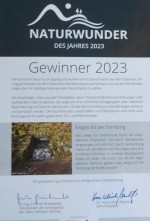 Werner Mohr überbrachte die Glückwünsche vom Deutschen Wanderverband und lobte die Aktivitäten des WWV, der mit großem Engagement geführte Wanderungen durch den Westerwald arrangiert und durchführt. Landrat Achim Schwickert gab "Trophäe" und Urkunde weiter an den Bürgermeister der Ortsgemeinde Dornburg, Andreas Höfner, weil die Auszeichnung da hingehört, wo sich das Naturwunder befindet. Bürgermeister Höfner sagte zu, dass die Auszeichnung einen würdigen Platz im Dorf- und Heimatmuseum Dornburg-Wilsenroth finden wird.