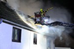 Die Einsatzleitung ließ wie bereits in der Nacht die Drehleiter der Freiwilligen Feuerwehr Dierdorf alarmieren. Die Feuerwehrleute bauten mehrere Schlauchleitungen auf, um von zwei unabhängigen Hydranten die Wasserversorgung sicherzustellen. Der Brand im Bereich des Hauseingangs konnte schnell abgelöscht werden, sodass Kräfte unter Atemschutz in das Gebäude gehen konnten. Die Absuche der Räume brachte dann die Gewissheit, dass sich niemand im Haus aufhielt. Der Brand hatte sich bereits in den Dachstuhl ausgebreitet. Es wurden Löschmaßnahmen über die Drehleiter sowie mit Strahlrohren vorgenommen. Aus dem Korb der Drehleiter wurde die Dacheindeckung entfernt, um die Flammen zu erreichen.