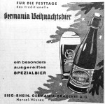 Wissen. Das spezielle Weihnachtsbier der Germania-Brauerei, welches von vielen Wissenern noch gut in Erinnerung ist, war kein gewöhnliches saisonales Getränk. Es handelte sich hier nicht um ein Bier mit typischen weihnachtlichen Gewürzen wie Zimt oder Rosinen, sondern es ähnelte eher dem traditionellen Märzenbier.