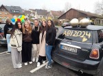 Am Nachmittag um 16 Uhr versammelten sich gut zwei Dutzend teils schon festlich dekorierte Fahrzeuge auf dem Parkplatz neben dem Stadion. Weitere Ballons und die Beschriftung "Abi 2024" wurden an den restlichen Pkw angebracht. Einige besonders fleißige Schüler sprühten den Schriftzug noch schnell auf weiße Tücher, welche dann die Motorhauben der Autos schmückten. Auf speziell angefertigten T-Shirts wurden sogar die Namen der erfolgreichen Absolventen verewigt.