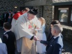 Die Zeremonie wurde von Pastor Pfarrer Martin Kürten und Diakon Thomas Eiden durchgeführt. Sie führten die festlich gekleideten Kinder einzeln vor den Altar. Nach dem Gottesdienst wurden die Kinder von ihren Eltern und Verwandten auf dem Kirchplatz erwartet. Dort überschütteten sie die frisch gebackenen Kommunikanten mit Glückwünschen und kleinen Geschenken.