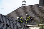 Über die Drehleiter wurde die Bedachung teilweise entfernt, um an eventuell vorhandene Glutnester gelangen zu können. Im Innenangriff gingen mehrere Trupps unter Atemschutz in den Dachbereich vor. Den eingesetzten Kräften gelang es sehr schnell den Brand einzudämmen und dann gezielt abzulöschen. Die Einsatzleitung wurde, vor Ort, durch den Einsatzleitwagen Nord der VG Altenkirchen-Flammersfeld, stationiert in Berod, unterstützt. Für die Zeit der Löschmaßnahmen musste die Bundesstraße (B 256) voll gesperrt werden.