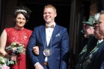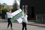 Zum Marsch der Musikkapellen zur Residenz war es dann wieder trocken und die Zuschauer und Teilnehmer zeigten sich erfreut und gut gelaunt. Für die Musik sorgten der Musikverein Scheuerfeld, Klangwerk Morsbach und natürlich die Bergkapelle "Vereinigung" Birken-Honigsessen. Die Schützen aus Schönstein, Niederfischbach, Mudersbach, Gebhardshain, Selbach und Hamm (Sieg) nahmen am Umzug teil. Viel Applaus der Zuschauer erhielten die Fahnenschwenker, die trotz des zeitweisen böigen Windes ihr Können zeigten.