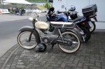 Sonja Eitelborn war natürlich mit ihrer NSU Quickly erschienen. Sie ist treue Teilnehmerin an der Raiffeisen Veteranenfahrt und zeigt gerne ihr Gefährt, dass sie schon fast überall hingebracht hat. Neben der Quickly gab es, wer kennt sie nicht, auch die Kreidler Florett zu bestaunen. Ein besonderes Interesse weckt immer der Trabant. Dieses fast unverwüstliche Auto weckt bei einigen Besuchern Erinnerungen und regt zum technischen Fachsimpeln an.