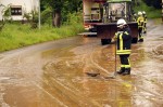 Um 16 Uhr wurde die Freiwillige Feuerwehr Flammersfeld nach Walterschen alarmiert. Hier war es zu einer massiven Überflutung der Hauptstraße gekommen. Einsatzleiter Alexander Oberst ließ daraufhin den Löschzug Oberlahr alarmieren. Der Löschzug Oberlahr ist für die Bekämpfung von Wasserschäden mit dem entsprechenden Material ausgestattet und wird damit in der gesamten Verbandsgemeinde tätig. Durch die Überflutung kam es in mehreren Häusern zu Wassereinbrüchen in die Kellergeschosse, die durch die Feuerwehren beseitigt wurden. Der stellvertretende Wehrleiter der VG-Altenkirchen-Flammersfeld Michael Imhäuser machte sich vor Ort ein Bild der Lage. (kkö)