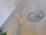 Der Innenangriff musste nach kurzer Zeit abgebrochen werden, da ein weiteres Vorgehen unmöglich wurde. Daraufhin beschränkten sich die Löschmaßnahmen auf den Außenangriff. Von beiden Drehleitern wurde durch Fensteröffnungen Wasser in das Feuer abgegeben. Durch die bauliche Situation, im Giebel befand sich ein sogenannter Spitzboden, konnte ein Innenangriff in diesem Bereich nicht durchgeführt werden.