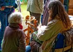 Helmenzen. Mit dem Spinnrad konnten die Besucher mit der kardierten Wolle Wollfäden spinnen oder kleine Objekte filzen. Auch die Kinder hatten großen Spaß und halfen bei allen Arbeitsschritten begeistert mit.