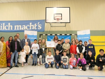 Die Siegerehrung fand in der Turnhalle vor der gesamten Grundschule mit Schuldirektor Lukas Fuchs, Bürgermeister Berno Neuhoff und Milag-Geschäftsführer André Nolden statt. "Milch ist ein besonderes Naturprodukt, das es auch in Zukunft geben soll", rief Rektor Fuchs den Kindern ins Gedächtnis. Nolden ergänzte: "Wir befinden uns hier in einer Region mit viel Grünland und dadurch an einem klassischen Standort der Milcherzeugung in Rheinland-Pfalz." Kein Wunder also, dass fast alle Kinder schon einmal auf einem Bauernhof zu Besuch waren und ihnen der Anblick von Kühen vertraut ist. Überraschend meldeten sich aber nur vier der über 400 Grundschülerinnen und Grundschüler auf die Frage, wessen Familie einen Milchkuhbetrieb zuhause bewirtschaftet.