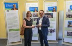 Nach dem Hissen der Fahne wurde in der VHS eine kleine Wanderausstellung eröffnet. Auf insgesamt vier Tafeln lässt sich mehr erfahren über Friedrich Wilhelm Raiffeisen, seine Idee und seine Bedeutung bis in die Gegenwart.
