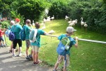 Den Betreuern muss ein großes Lob ausgesprochen werden, denen es gelang, 30 Gruppen, die vorher über den ganzen Parkplatz verteilt der Rede der Staatssekretärin gefolgt hatten, zu ordnen und in einer langen Schlange zum Eingang des Zoos zu führen. Auch in den kurzen Wartezeiten kam keine Langeweile bei den Kindern auf, die sich die Zeit mit allerlei Schabernack vertrieben.