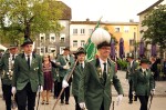 Der Sonntag stand dann im Zeichen des großen Festzuges. Zahlreiche Gastvereine traten gemeinsam mit der Schützengesellschaft auf dem Schlossplatz an. Musikalisch wurden die Schützen durch die Stadtkapelle Betzdorf, der Feuerwehrkapelle Nistertal und dem Blasorchester Mehrbachtal unterstützt. Der amtierende König, Thomas (Niederhausen) schritt die Front ab und begrüßte die Gäste. Dann erscholl das Kommando "Festzug Marsch!" und der lange Zug setzte sich in Bewegung. Der Weg führte zunächst nicht direkt zum Platz der Parade, um den Majestäten und Ehrengästen Zeit zu geben sich auf dem Marktplatz zu formieren. Nach einem kurzen Weg ums Karree nahmen Thomas I. (Niederhausen) mit seiner Königin Alexandra sowie die Majestäten der Gastvereine und die Ehrengäste die lange Parade ab. Anschließend zog der "grüne Lindwurm" zum Festplatz. In diesem Jahr war es den Verantwortlichen gelungen, ein wenig Kirmesgefühl auf den Festplatz zu zaubern. (kkö)