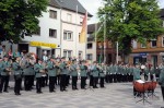 Rund um den Marktplatz warteten bereits zahlreiche Zuschauer und applaudierten beim Einmarsch. Musikalisch begleitet wurden die Schützen durch die Stadtkapelle Betzdorf und dem Spielmannszug Heimbach-Weiss. Die Schützen und die Musik nahmen Aufstellung und dem Schützenmeister wurde gemeldet, dass der Zapfenstreich beginnen könne. Unter den Augen von Landrat Dr. Peter Enders, Verbandsbürgermeister Fred Jüngerich, dem Beigeordneten der Stadt Paul-Josef Schmitt, dem Stadtbürgermeister Ralf Lindenpütz und Erwin Rüddel (MdB), sowie hochrangigen Vertretern der Schützengesellschaft erklang dann auch das bekannte Stück "Ich bete an die Macht Liebe". Die Nationalhymne, die viele Besucher mitsangen, beendete die feierliche Zeremonie. Danach zogen die Schützen und viele Gäste zum Festzelt und feierten.