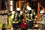 Die Lage vor Ort stellte sich herausfordernd dar, da im engen "Klosterdorf" nur wenige Stellflächen für die Drehleiter zur Verfügung stehen. Vier der insgesamt zwölf "Verletzten" waren, beim Eintreffen der Feuerwehr, noch im Haus. Der Brand war im zweiten Obergeschoss ausgebrochen und hatte den Betroffenen den Fluchtweg versperrt. Die Drehleiter sowie weitere Trupps unter Atemschutz gingen zunächst zur Menschenrettung und Personensuche vor. Die acht "Verletzten", die sich bereits außerhalb des Gebäudes befanden, wurden zunächst durch Feuerwehrleute betreut und dann an die Kräfte des DRK-Ortsvereins übergeben. Drei "Verletzte" wurden über das Treppenhaus und eine verletzte Person über die Drehleiter gerettet und ebenfalls an den Rettungsdienst übergeben. Die "Brandbekämpfung" fand dann im sogenannten Innenangriff und über die Drehleiter statt.