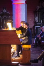 Raumfüllend erklang das Preludio festivo aus der II. Orgelsinfonie g-Moll op. 45 Nr. 2 des polnisch-deutschen Musikers Feliks Nowowiejski (1877-1946). Intensive Hand- und Fußarbeit des Orgelvirtuosen brachte die Akustik der Abteikirche zum Schwingen. Nach verhaltenem Beginn erklangen Blechsound und Orgelorchester-Schleifen beim Choral II h-Moll aus Trois Chorals pour Grand Orgue von César Franck (1822-1890).