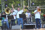 Wissen. Möglicherweise hätten sich noch mehr Zuschauer auf den Weg gemacht, doch wegen starker Sommerhitze (30 Grad), werden einige ein Freibad aufgesucht haben, oder es sich im heimischen Garten im Schatten gemütlich gemacht haben. Trotzdem war die Resonanz zufriedenstellend, das Publikum konnte unter vielen schattenspendenden Sonnenschirmen Platz nehmen und der bestens aufgelegten Jazzband lauschen.