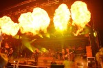 Bonefeld. Wolfgang Petry hatte einst von der "Hölle, Hölle" gesungen. Diese konnte man hautnah in Bonefeld beim Konzert von "Stahlzeit" erleben, denn das Feuer in der Hölle war gegen die Pyro-Show n Bonefeld vergleichsweise ein harmloses Lagerfeuer. Trotzdem durfte die Freiwillige Feuerwehr Bonefeld, die mit einem Großaufgebot das Konzertgelände für den Fall der Fälle sicherte, einen geruhsamen Abend verbringen und ausgelassen mitfeiern. Ohne Unterlass knallte und flammte es vor und auf der Bühne, dazu die unnachahmliche Bühnenshow von "Stahlzeit", ein traumhaftes Open-Air-Wetter und ein Publikum, das sich richtig austoben konnte, weil man nur von Gleichgesinnten umgeben war.