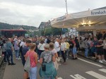 Zugleich versammelten sich um 18.30 Uhr zahlreiche Gäste vor der Bühne am Marktplatz, um den traditionellen Fassanstich mitzuerleben. Ortsbürgermeister Dominik Schuh führte den symbolträchtigen Akt aus, gefolgt von kräftigem Applaus, Tusch und Trommelwirbel. Schuh eröffnete damit offiziell die Festtage: "Ich freue mich, dass bei der Eröffnung so viele Vereine mitgelaufen sind. Es werden jedes Jahr mehr und wir haben einen ganz tollen Zusammenhalt im Ort, das zeigt sich auch an solchen Aktionen wie heute."