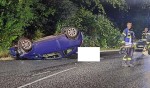 Oberlahr. Vor Ort auf der B256 zwischen den Ortschaften Horhausen und Oberlahr konnten die Beamten einen Pkw (Opel Corsa) feststellen, der sich überschlagen hatte. Nach Kollision mit mehreren Verkehrszeichen ist das Fahrzeug auf dem Dach liegend zum Stillstand gekommen. Von einem Fahrer oder Beifahrer war zu diesem Zeitpunkt nichts zu sehen. Da aufgrund der Lage und der Beschädigungen an dem Fahrzeug davon auszugehen war, dass es zu Verletzungen gekommen sein könnte, wurde der Rettungsdienst ebenfalls alarmiert.