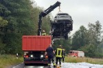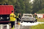 PKW brannte in der Nähe von Schürdt: Aufwändiger Einsatz der Feuerwehren