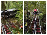 Die Rettungskräfte verschafften sich mittels Steckleitern und Motorsägen Zugang zum Pkw. Bei der Erkundung stellte sich heraus, dass die Person offensichtlich schwer verletzt war, aber nicht eingeklemmt. Die technische Rettung beschränkte sich daher für die Feuerwehrleute auf das Öffnen eines Dachfensters und die sichere Bergung der Person mit einem Rettungsbrett.