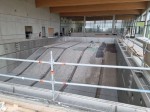 Der Blick in beinahe jeden Winkel der Sportstätte machte deutlich. Es gibt wahrlich noch viel zu tun. Derzeit werden die Fliesen verlegt, sind die Umkleidekabinen (inklusive der vier Sammelumkleiden) eingebaut, fehlen für die Kleiderspinde lediglich noch die Türen. Im Eingangsbereich zeichnen sich dank vieler anzuschließender Kabel die Standorte der Automaten für Eintrittskarten und Verpflegung sowie der Drehkreuze als Ein- und Ausgang ab. Der Bereich des künftigen Planschbeckens ist zum Materiallager „zweckentfremdet“, das Lehrschwimmbecken mit Hubboden komplett installiert. Auch das Sportbecken mit seinem bereits sichtbaren Ein- und Drei-Meter-Brett strebt der Fertigstellung entgegen. Noch fehlen die Startblöcke für die fünf Bahnen umfassende 25 Meter lange Wettkampfarena. Bereits eingebaut sind die gläsernen Trennwände zwischen den einzelnen Beckenbereichen, die dafür sorgen sollen, dass die Lärmbelästigung nicht überhand nimmt. Die Außenanlagen mit Spielplatz, Rasen- und befestigter Fläche sind in groben Zügen komplettiert, der Höhenunterschied des Geländes wurde mit Gabionen als Stützmauer schön ausgeglichen. Wenn es die Witterung zulässt, können auf der Südseite Türen geöffnet werden, so dass Badegäste auch Liegewiese und Sitzgelegenheiten unter freiem Himmel nutzen können. Derzeit wird der Eingangsbereich zu Schwimmbad und großer Sporthalle neu gestaltet. „Die Technik im Keller ist zu 90 Prozent fertig“, merkte Norbert Koppe als Bauleiter des Generalplaners Krieger Architekten und Ingenieure GmbH aus Velbert an. Er muss es wissen, denn er betreut bereits den 29. Bau eines Schwimmbades. Alles in allem gesehen war Koppe mit der Lieferung von Baustoffen nach der Corona-Krise und vielfachem Mangel weltweit dennoch zufrieden: „Wir sind gut durch die Zeit gekommen.“