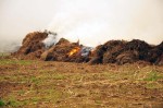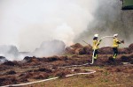 Weitere Kräfte der Feuerwehr fuhren zur Biogasanlage, um dort das weitere Lagergut zu überprüfen. Diese Prüfung fiel zur Erleichterung aller Beteiligten negativ aus. Vor Ort arbeiteten sich die Trupps, die ständig gewechselt wurden, langsam durch das brennende Material.