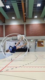 Obwohl Emilia (13 Jahre) erst seit drei Jahren Rhönrad turnt, war es bereits ihre zweite Teilnahme am Deutschland-Cup. Emilia turnte sowohl ihre Gerade-Kür als auch ihren Sprung, einen gehockten Salto vom Rhönrad, sehr ordentlich. Nach Platz 12 im Vorjahr durfte sie sich in diesem Jahr 27 Konkurrentinnen stellen und freute sich am Ende des Tages mit Platz sieben über eine Top Ten Platzierung. Svea ging ebenfalls in der Altersklasse 13/14 an den Start und konnte ihre Gerade-Kür als auch ihren Sprung ebenfalls ohne größere Fehler zeigen. Für die 13-Jährige war es die erste Teilnahme am Deutschland-Cup, die sie mit Platz zwölf und somit einer Platzierung im vorderen Mittelfeld beendete.