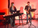 Der Small Talk wurde von dezenter Hintergrundmusik begleitet, die von den Absolventen des Landesmusikgymnasiums (LMG), Lea Wagenbach an den Keys und Paul Müller mit seinem Saxofon, vorgetragen wurde und sich der positiven Atmosphäre anpasste.