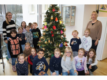 Büroleiter Michael Dützer bedankte sich herzlich bei den jungen Künstlern für ihr Engagement und lobte die sorgfältige Arbeit. Zum Abschluss des Schmückens erhielt jedes Kind einen Schokoladennikolaus als kleine Belohnung für die Mühe.