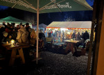 In einer Ecke wurde Stockbrot gebacken und auf Strohballen sitzend mit sichtlichem Appetit verzehrt. Aus 20 kg Teig entstanden leckere Reibekuchen, die mit Apfelmus, Rübenkraut oder Kräuterquark ergänzt wurden und sich so großer Beliebtheit erfreuten, dass die ehrenamtlichen Helfer kaum mit dem Bruzzeln nachkamen. Alternativ wurde auch gern beim Würstchenstand zugegriffen. Die etwa 400 Würstchen im Brötchen wurden heißhungrig verzehrt und mit Glühwein, Punsch oder heißer Oma begossen.