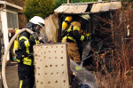 Als klar war, dass keine weitere Gefahr für die Einsatzkräfte bestand, wurden die Löschmaßnahmen intensiviert. Trotz des schnellen und professionellen Einsatzes der Feuerwehrleute wurde der Geräteschuppen ein Raub der Flammen. Nach den Löscharbeiten musste der schwelende Brandschutt auseinandergezogen und abgelöscht werden. In dem Schuppen waren, neben einer Waschmaschine, Gartengeräte gelagert. Personen kamen bei dem Brand nicht zu schaden. Die Nachlöscharbeiten zogen sich bis zum Mittag hin.