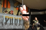 Als Höhepunkt des Abends wurde der Tanz an der Stange von "Leony" gefeiert, die zunächst mondän gekleidet die Bühne betrat und dann, verbunden mit akrobatischen Übungen an der Stange, einen ästhetischen Strip hinlegte, der wahre Begeisterungsstürme im Saal zur Folge hatte.